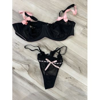 Personal Black Pink Bowtie bra and panty set worn in OF scene