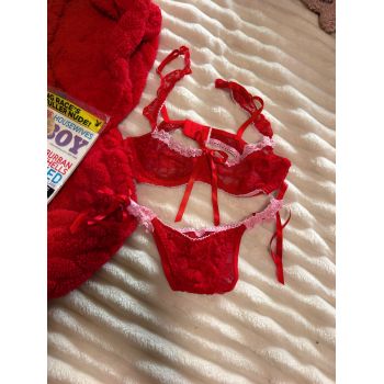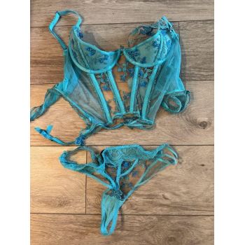 Sophie Dee teal bra and panties lingerie set + lipstick print
