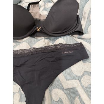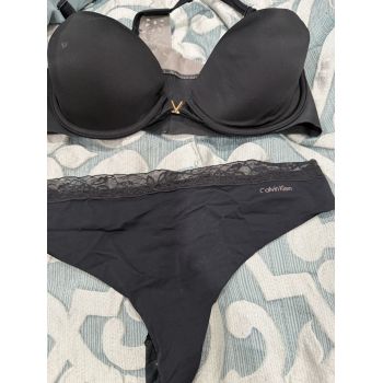 Black Temptation Duo – Used Victoria’s Secret Bra + Calvin Klein Thong… Still Warm & Scented From My Body