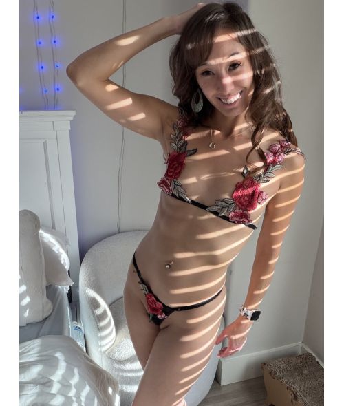 Slip into pure temptation: my Sweet Floral Temptation Set — delicate sheer lace blooming with soft pastel flowers that hug every curve. The bra teases with pretty embroidery and a tiny bow begging to be untied. The thong? Ultra-sheer, high-cut, and barely-there, with those sweet floral details dancing right over your most sensitive spots.