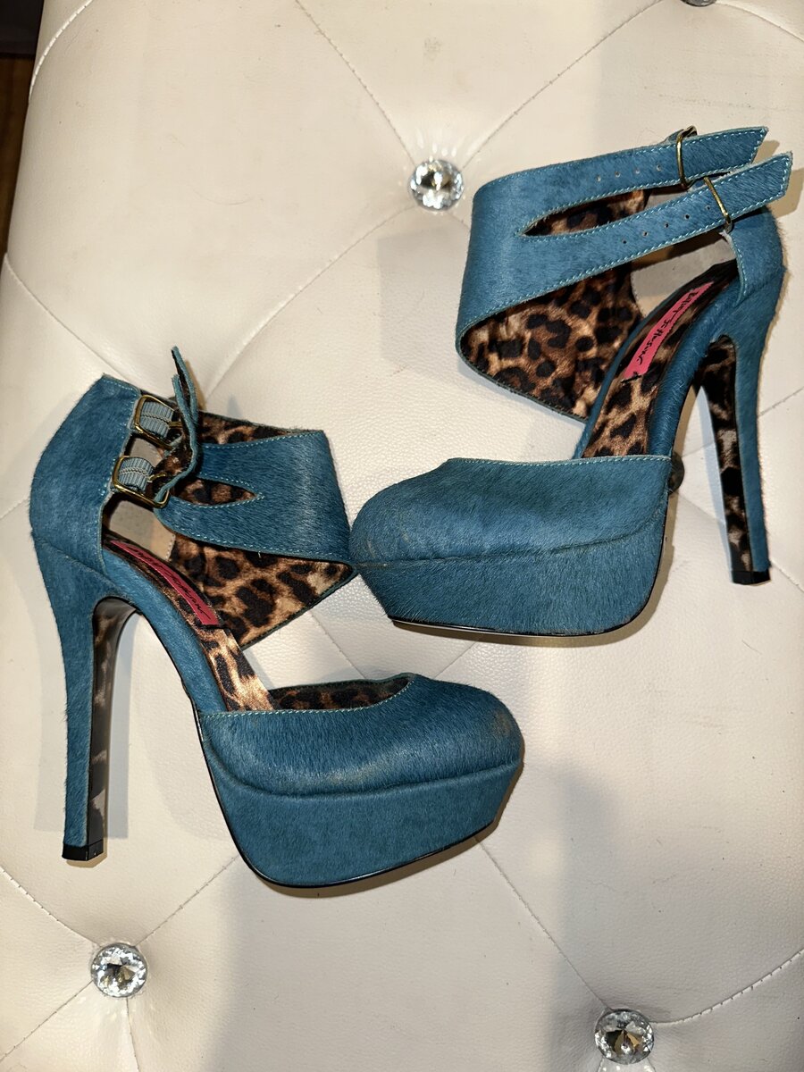 It’s time for me to let go of these sexy blue heels! I’ve worn them in many scenes, including this one for Throated. They are size 6 and well worn! The inside is leopard print, there’s a heart on the bottom of the shoes (for showing off when my feet are tucked behind my head!)