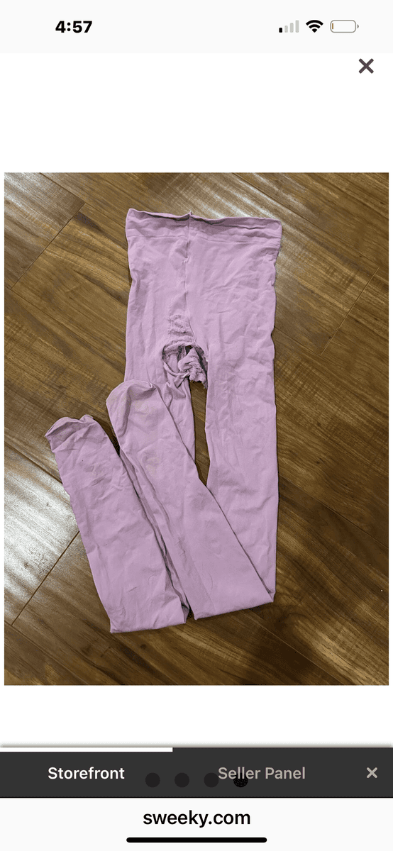 These unique, sexy purple pantyhose were worn in this scene with Shyla Jennings for Halloween!! You can see, they are ripped in the crotch which happens during the scene, Shyla ripped them up after they got sooo wet! And the feet are dirty from the last time I wore them!