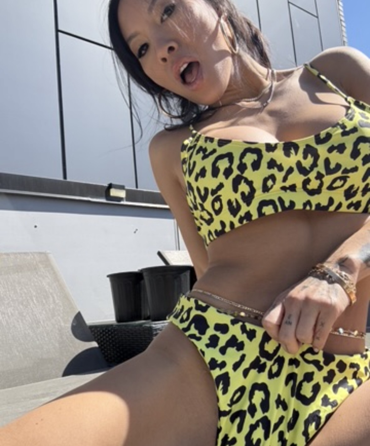 Neon Yellow Leopard print Bikini worn by meeee! I’ll make sure to put these on one last time (and maybe even enjoy one last orgasm) before sealing it up in a bag and sending it out to you, along with a signed Polaroid of me wearing it : )