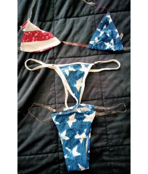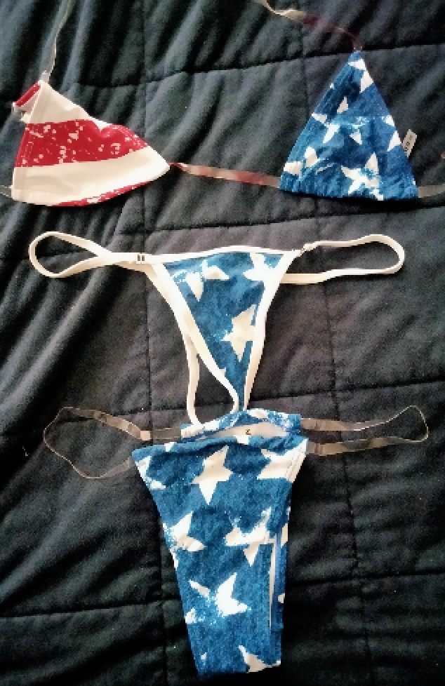 Winner gets all 3 pieces to the AMERICANA BIKINI worn/used by BRIANNA DYMOND. Items will arrive sealed in a ziplock bag to preserve her sexy scent!