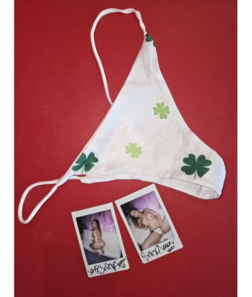 BRITNEY AMBER DIRTY WORN LUCKY SHAMROCK THONG vacuum sealed + 2 autographed PHOTOS