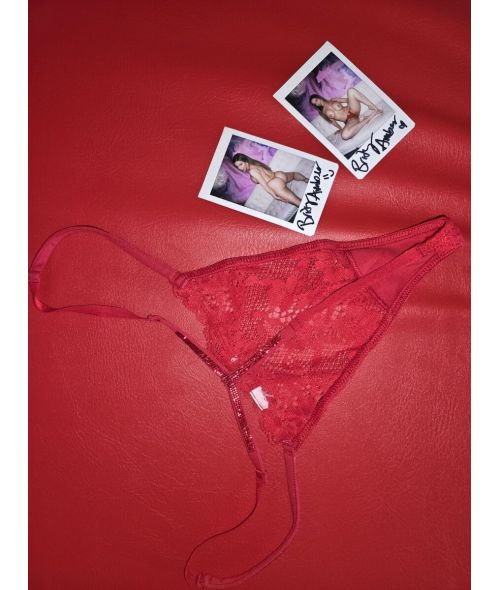 Britney Amber Dirty Worn Red Lace Rhinestone G String + 2 autographed polaroid photos! Ships VACUUM SEALED!!