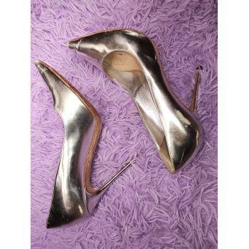 Britney Amber Worn Silver Metallic Sergio Rossi Designer Heels Size 38 1/2