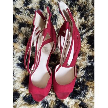 Britney Amber Worn Strappy Red Heels US Size 8 1/2