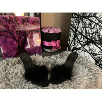 Black Fluffy Mule Heels - Size 9