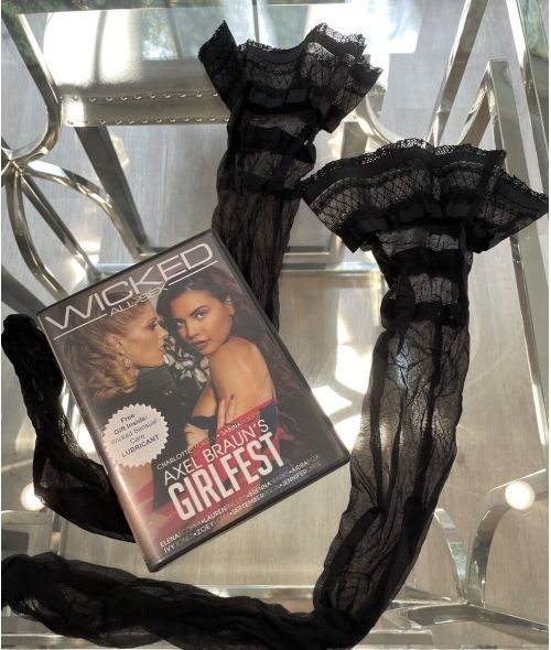 My couture thigh highs with a very sexy pattern worn in my girl girl scene with Sabina Rouge. I am also including the DVD I wore them in which was an award nominated scene AND movie! Directed by Axel Braun for Wicked Pictures. Enjoy!