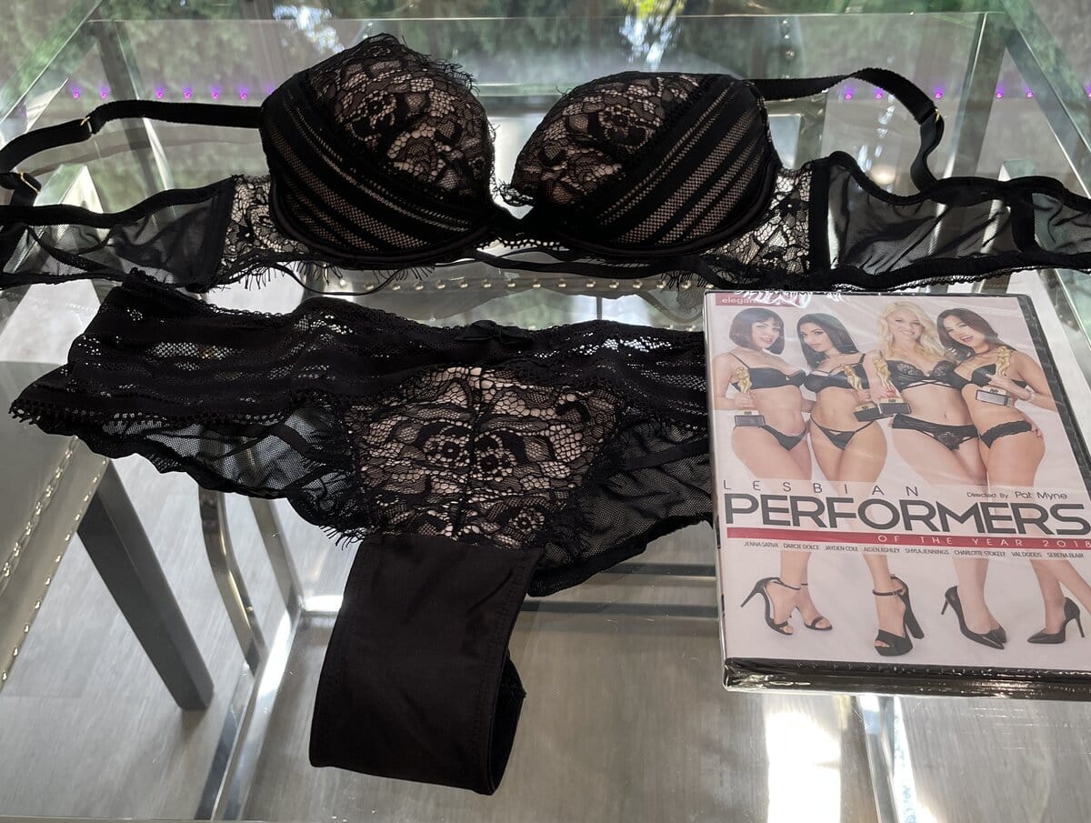 You’ll love this exquisite and expensive French lingerie bra and panty set worn on the box cover ‘Lesbian Performers of the Year 2018’ and worn in my scene with Shyla Jennings for this film!