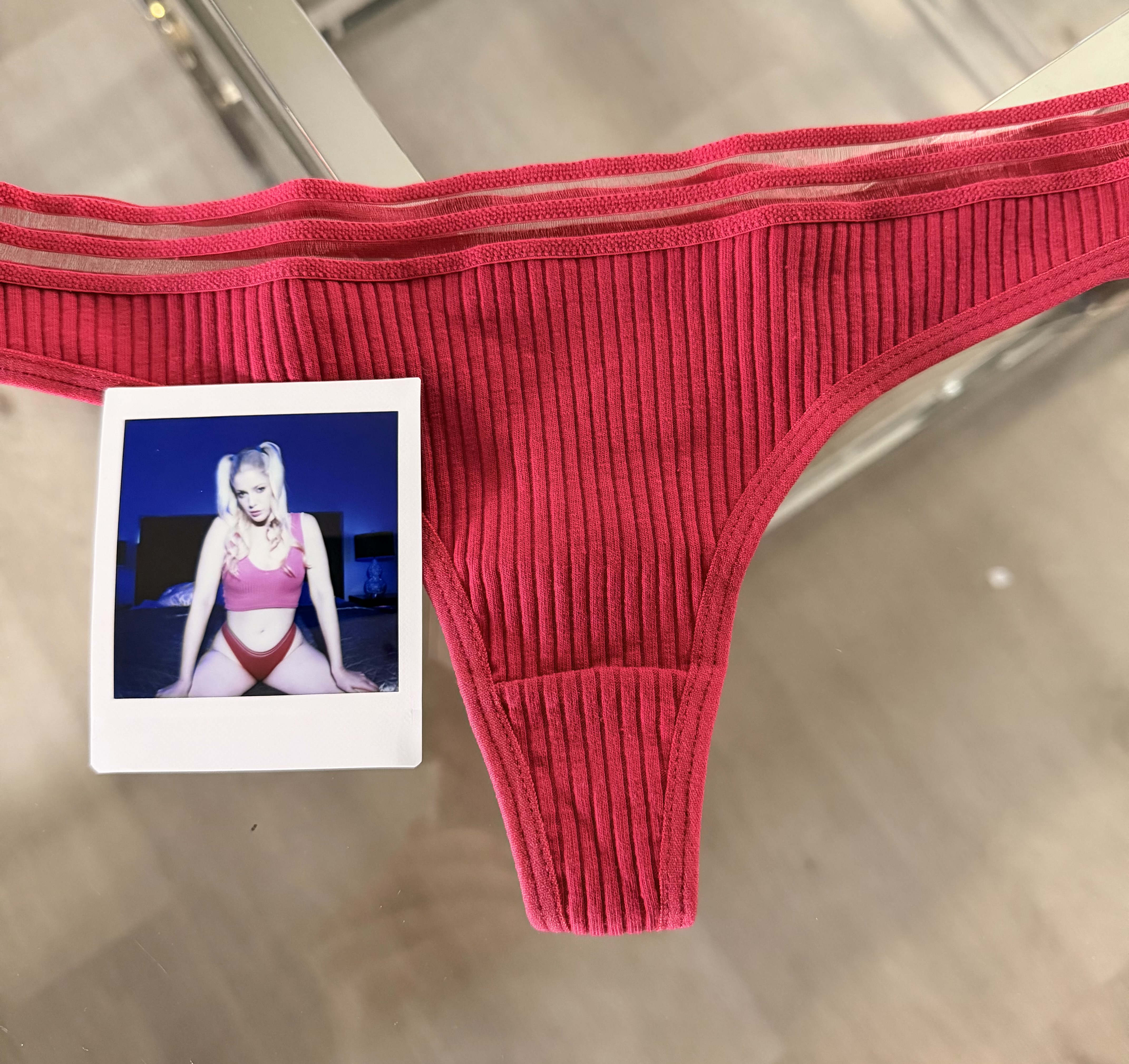 Charlotte Stokely’s red cotton thong + FREE Autographed Polaroid