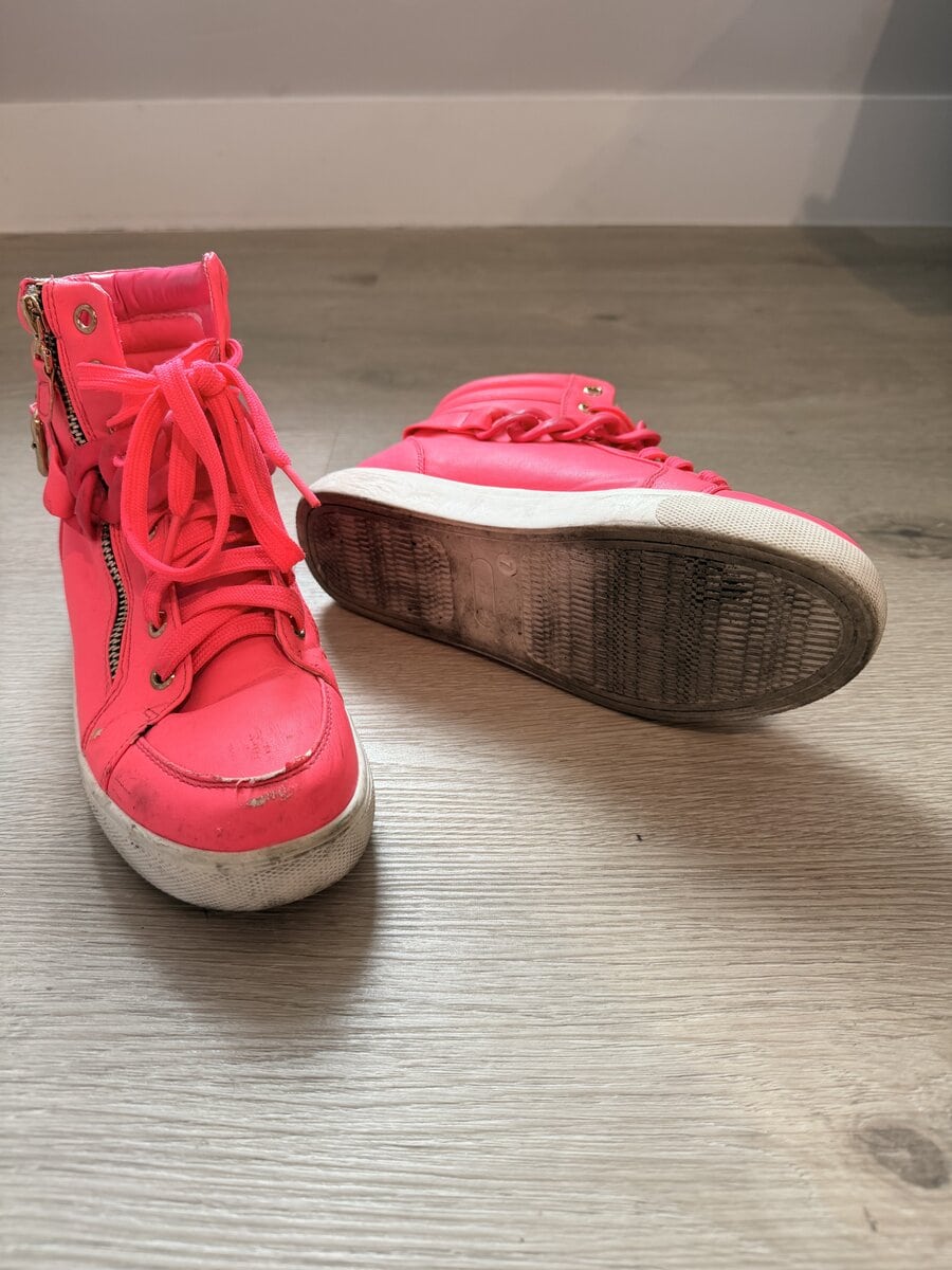 Charlotte Stokely’s Very Worn Hot Pink Sneakers