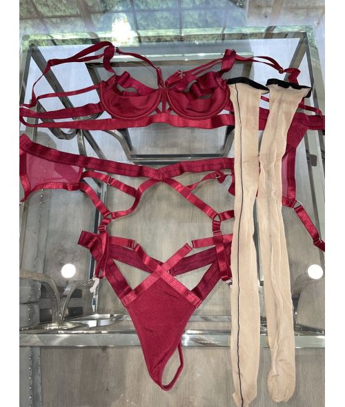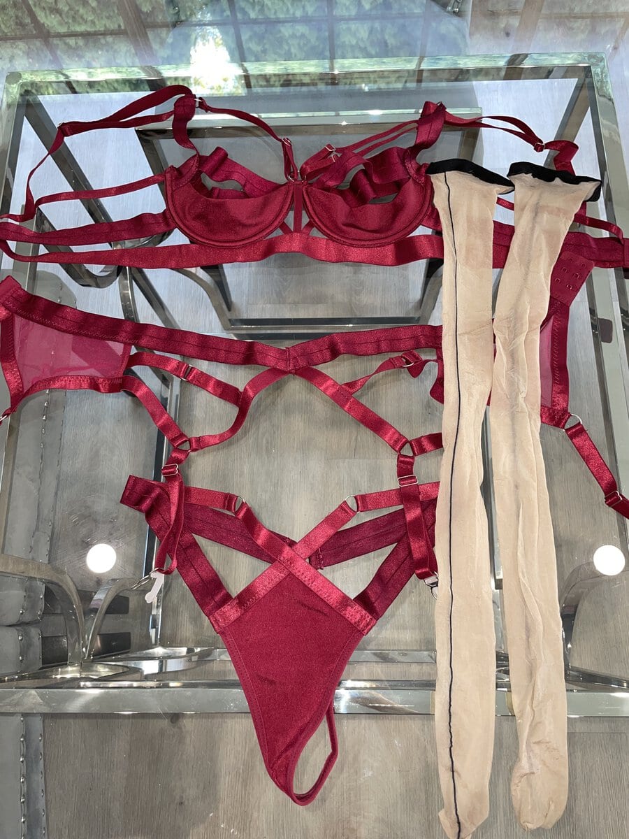 My Scandalous Strappy Lingerie (bra + panty+ garter belt) and Ultra Silky Nude Thigh Highs complete this package. xoxo