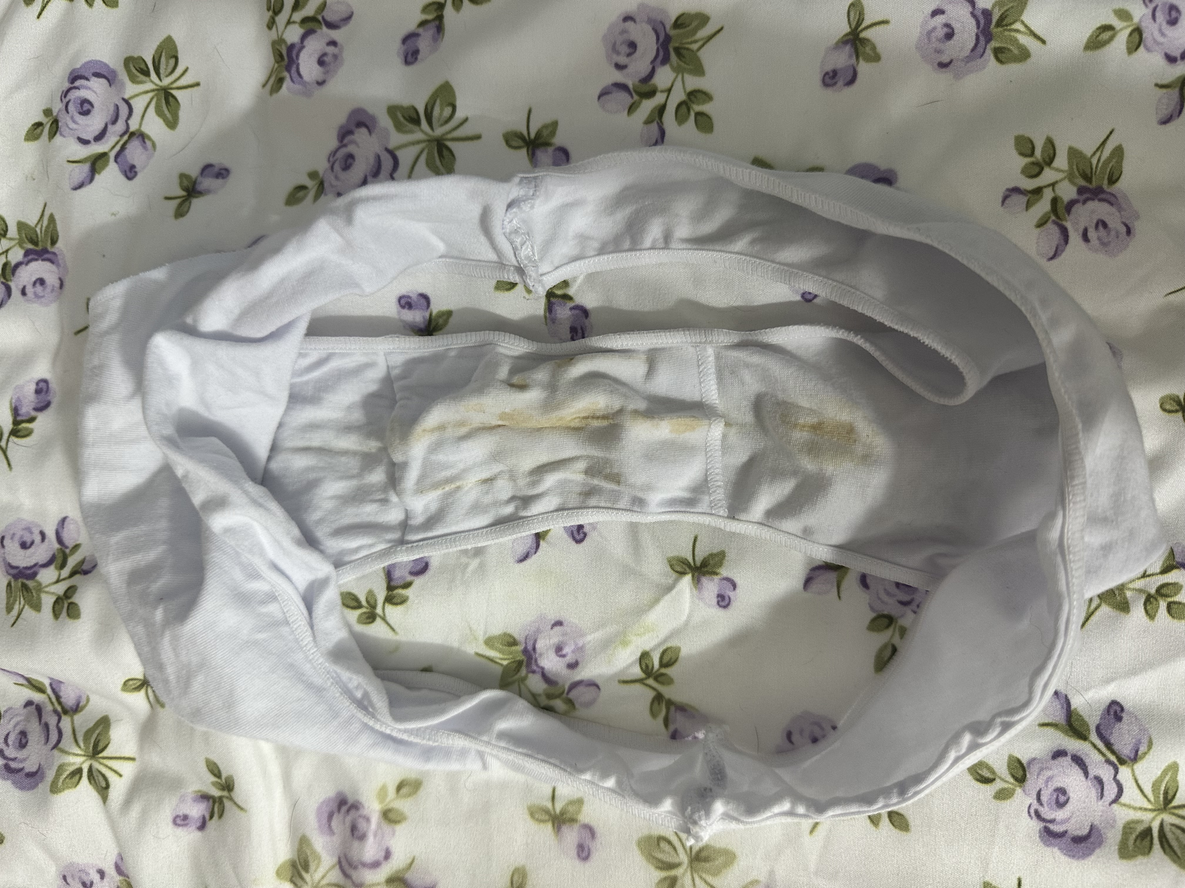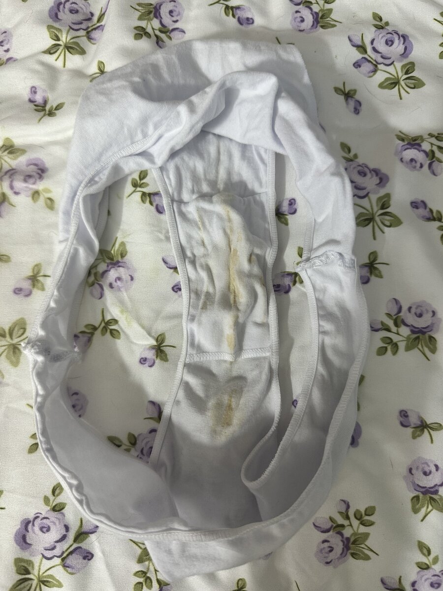 Filthy dirty white cheeky panties from a bondage scene I recently had.
