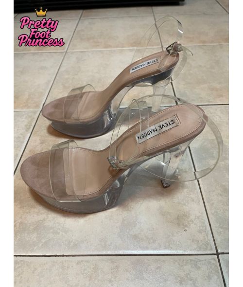 Steve Madden 5.5-inch clear stripper heels I currently wear them -- so they will get even more toe prints and smell Shoes will be enclosed in a plastic...
