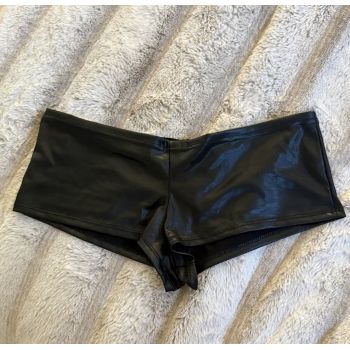 Sofie’s worn black pleather “hot pants” AKA booty shorts