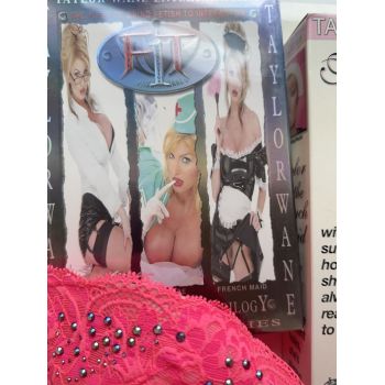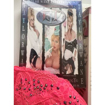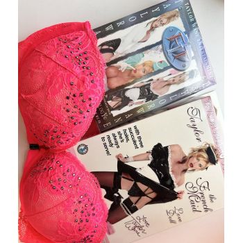Sexy studded Cotton Candy Pink Bra, with blowup doll and Trilogy DVD set