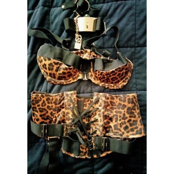 BRIANNA DYMOND worn/used 3-pc KINKY LEOPARD LINGERIE from scene with MANUEL FERRARA