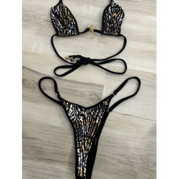 Personal Gold Tone Print Bikini Worn in 4way Couple Swap Haley Roses OF scene