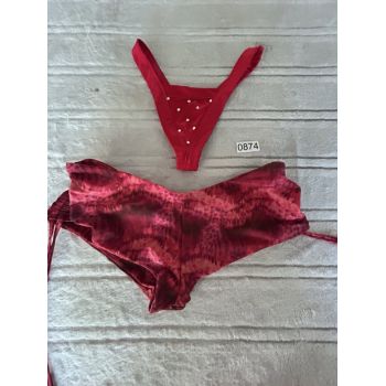 Worn Used Black Fishnet Rhinestone Bikini Set