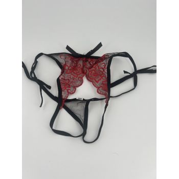 Anna Claire Clouds Animal Print Black Lace Thong !!
