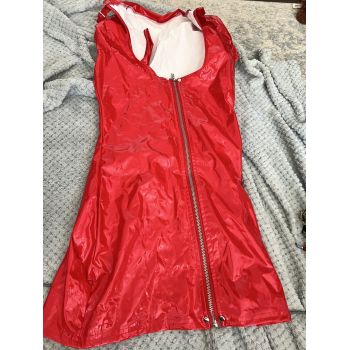 Melissa Stratton's Slutty Red Zip Up Vinyl Dress from Shoot w/Hayley Davies