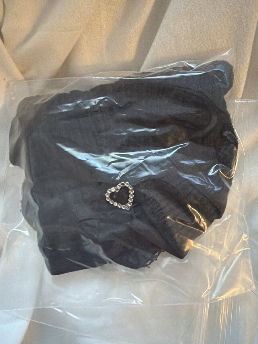One of the cutest pair of panties that I own and it has a heart charm on the back of the panties. It has a dry cum stain on it as well, so get them before they’re gone!