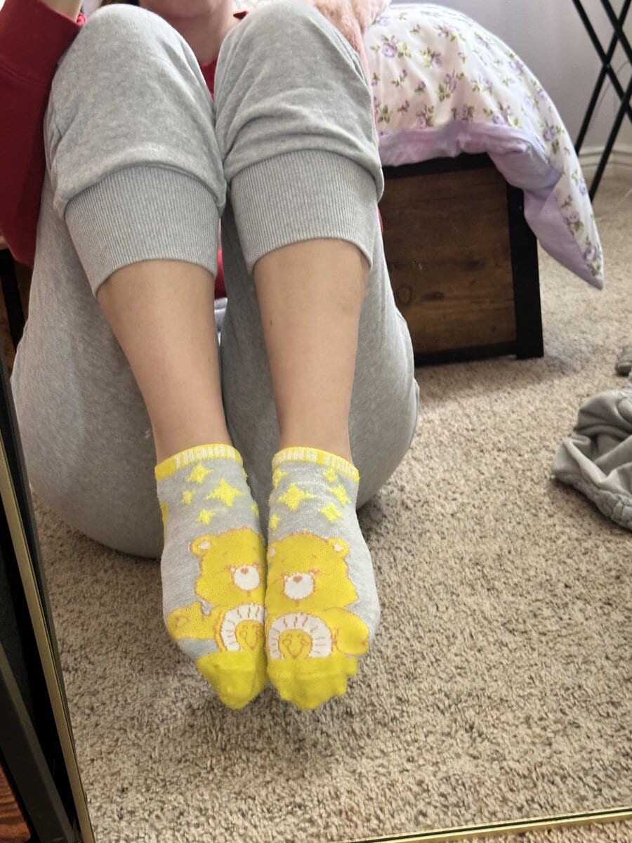 My cute care bear socks!! I wear these to all my movie scenes to keep my feet clean on the dirty surfaces