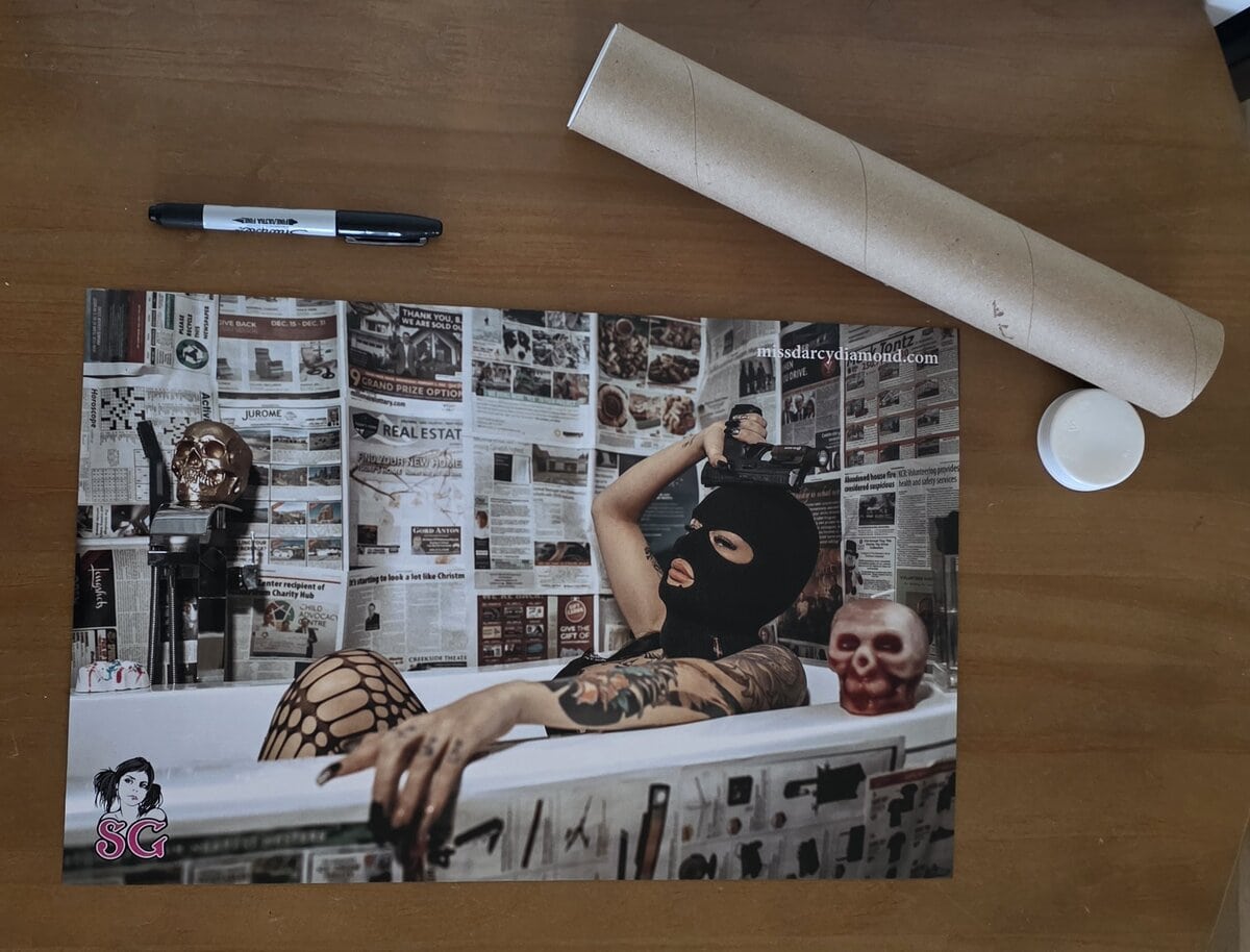 Each 11x17 premium glossy print features a different side of Darcy Diamond.. from dark cinematic latex, to outlaw cowgirl, to ethereal goddess, to raw tattooed glam.