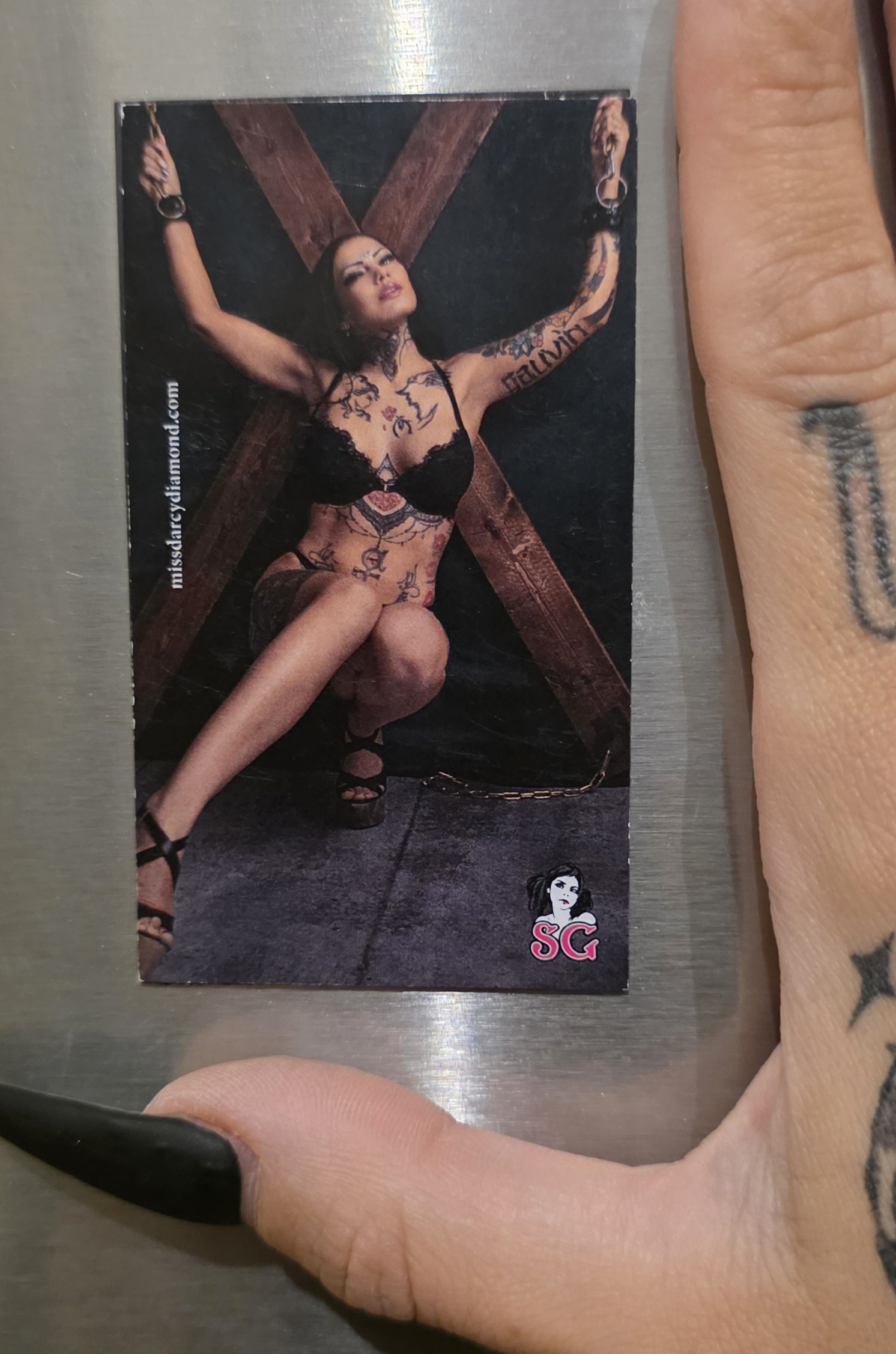 This 2 x 3.5 inch premium photo magnet features an exclusive Darcy Diamond look from one of my signature shoots.. from dark gothic latex to soft intimate goddess, from masked rebel to wild warrior.