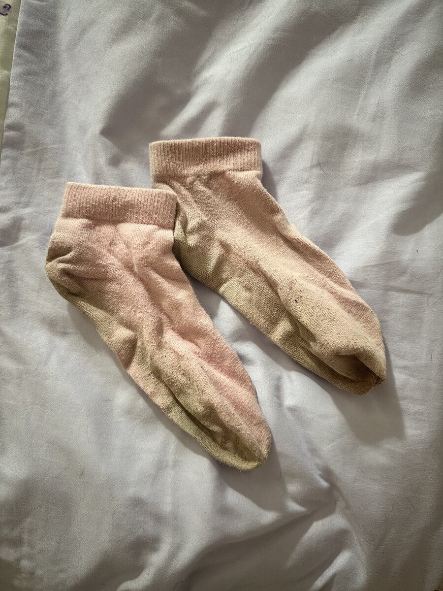 My dirty, sweaty, pink socks I only ever wear to the gym. Still smells like my last workout hehe