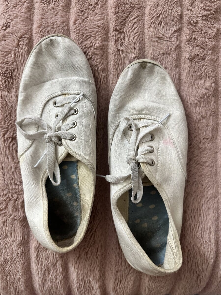 These shoes were worn for a lot of Reality Kings scenes when I was an extra for anything sports related. Very dirty and has a little cum stain on them