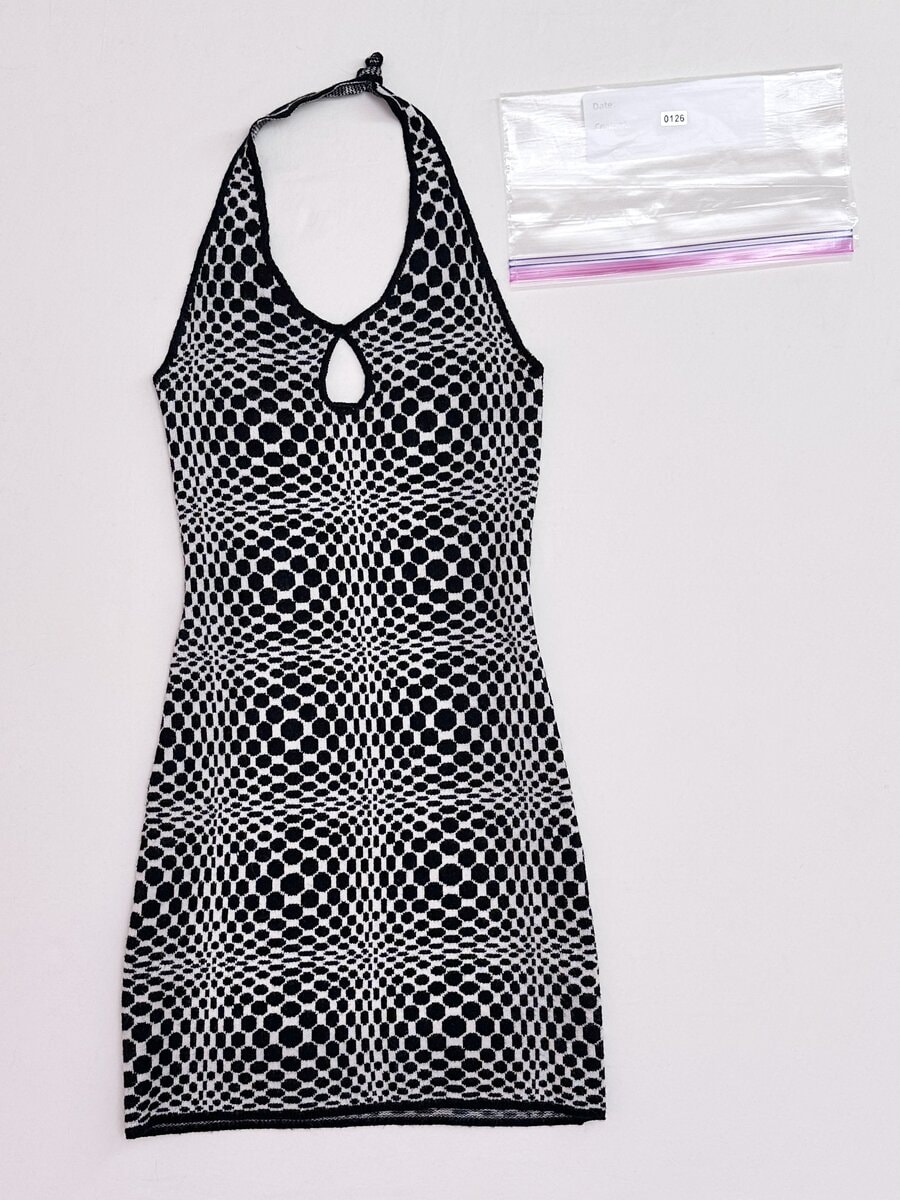 SOLD OUT #152 - Hot Pink and Black Halter Dress