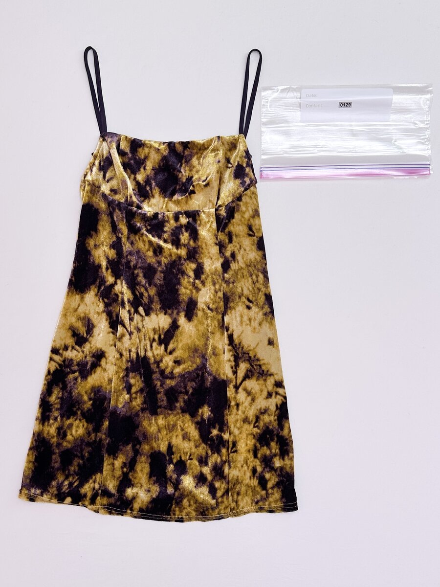 #129 Yellow Brown, Spaghetti Strap Velvet Dress