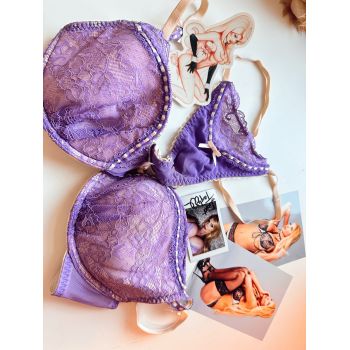 Lacey Lilac bra 36DD, with matching panties and collectibles.