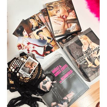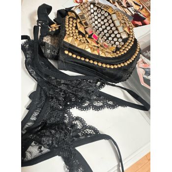 The KINK collection. Black studded Fetish bra. Open crotch panties, and collectibles