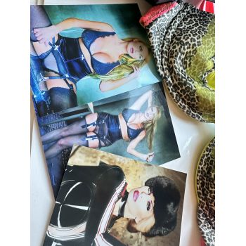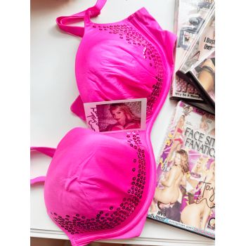 Pink pushup Bra with sequin trim 36DD, with polaroid and collectibles.