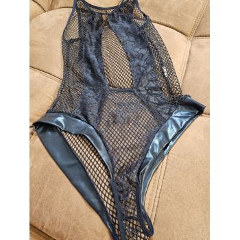 Shimmery Elegance's Fishnet and Lace Design Bodysuit in Black