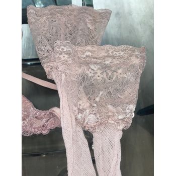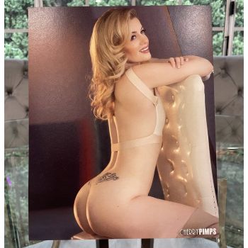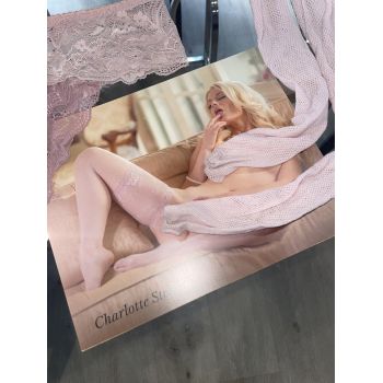Charlotte Stokely’s Cherry of the Month French Bra + Panty set + matching French Thigh Highs + Floral Robe+ Necklace + Heels +8x10 COMPLETE OUTFIT