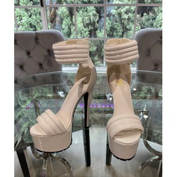 Charlotte Stokely’s Shiny Nude Stilettos with Bows
