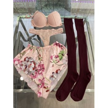 Charlotte Stokely’s Bra & Panty + Satin Floral Shorts + Over the Knee Socks worn with Dillion Harper
