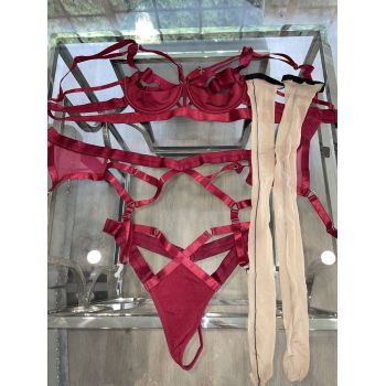 Charlotte’s Scandalous Strap Lingerie (bra + panty+ garter belt) and Ultra Silky Nude Thigh Highs [CLONE]
