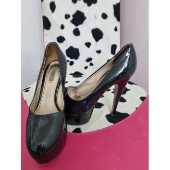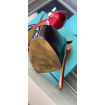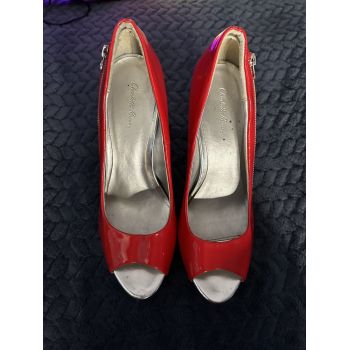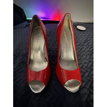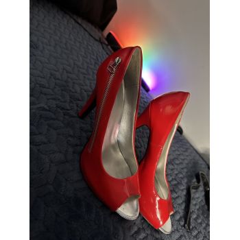6inch Stiletto Heel with strap. Red and dark burgundy patent leather