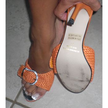 APRIL PAISLEYS WORN STRIPPER 'PLEASER' HEELS