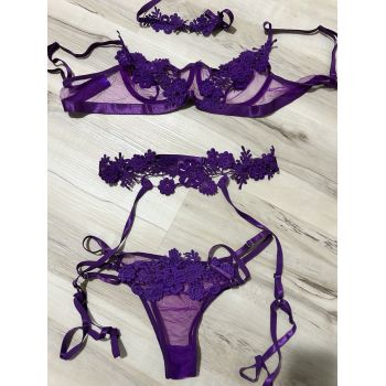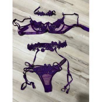 Used Unwashed Purple Lace Pany, Bra, Garter Belt and Choker Set. Worn By Scarlett Alexis In Anal Fabulous 4