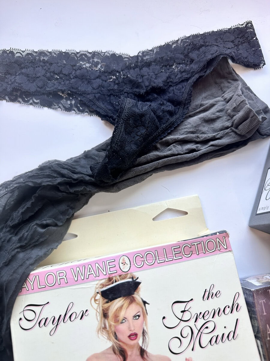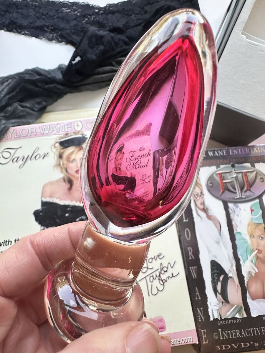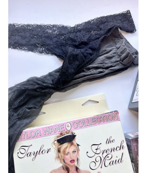 French Maid blow-up doll, Glass butt plug, pantyhose panties, DVD trilogy.