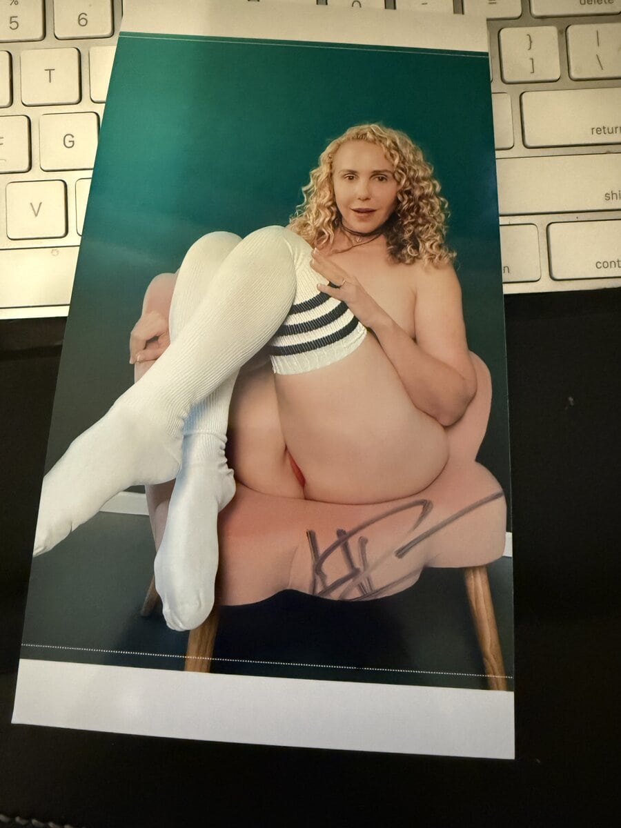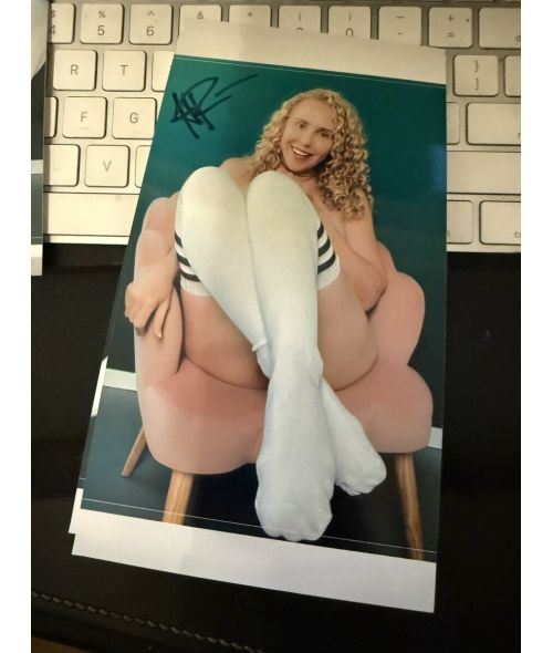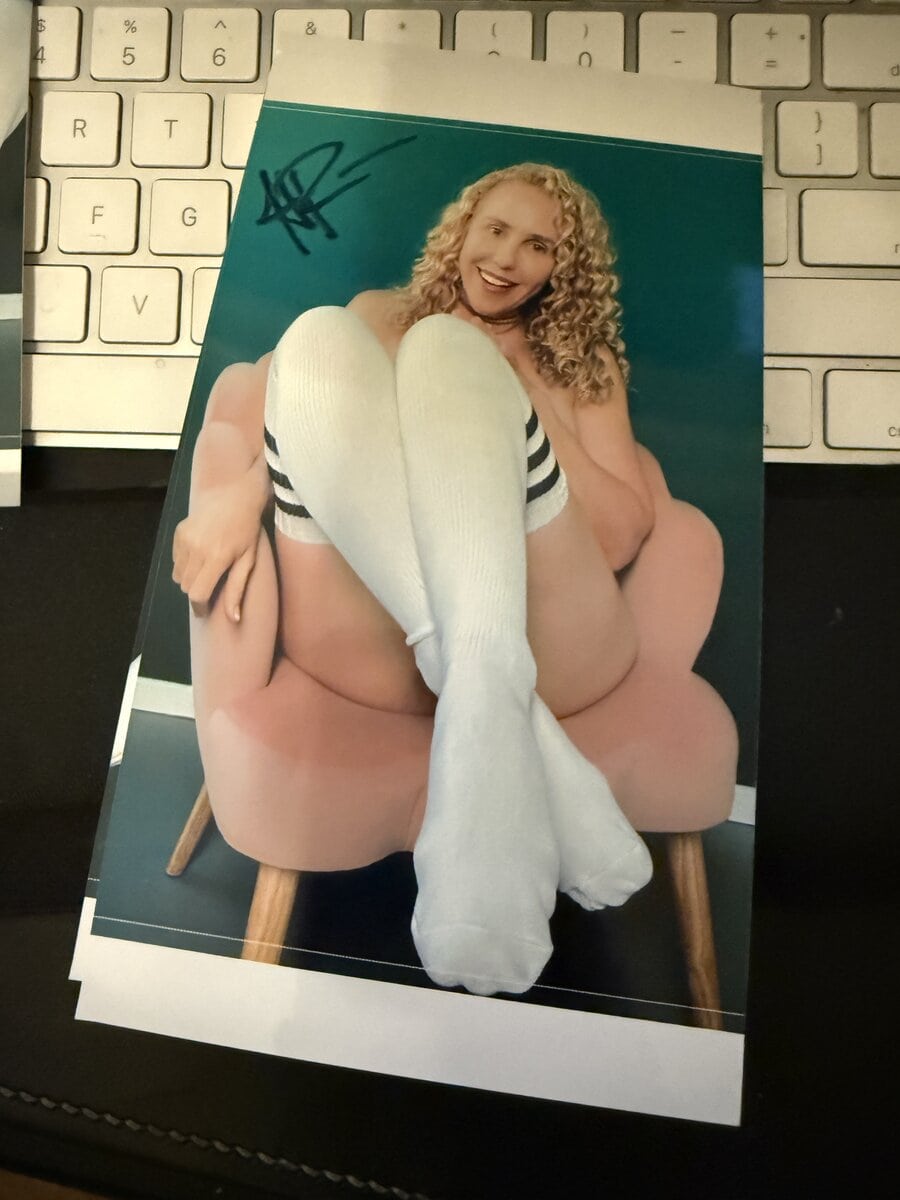 If you like socks, she will work out in them and wear them a few more times before shipping. We will vacuum seal to guarantee freshness. This is a great listing that includes socks and 3 signed photos!