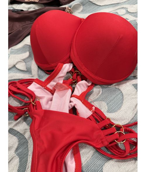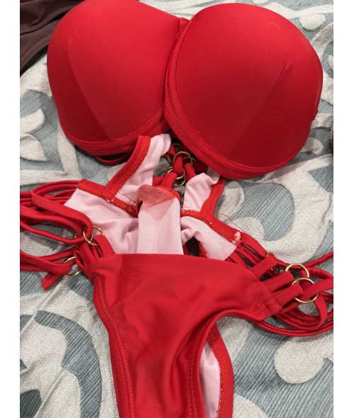 Hey pervs… this slutty little red two-piece barely covered my juicy tits and smooth pussy while I was strutting around Waikiki. The bright red fabric is super thin, soaked in salt water, sunscreen, and my sweet creamy juices after a full day of teasing. The bottoms have that perfect camel-toe imprint and a faint pussy scent that’ll drive you wild. Top still smells like my perky tits and coconut oil. Lightly stained in all the right places, freshly worn just for you. Wrap it around your hard cock, inhale deep, and stroke while you imagine me riding you in it. Super soft, extra naughty, and ready for your dirty collection. Grab it before another guy does