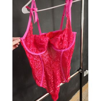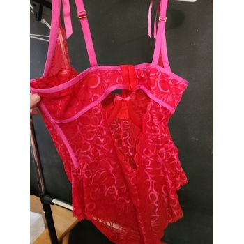 Sophie Dee sexy dark red Bodysuit + lipstick print